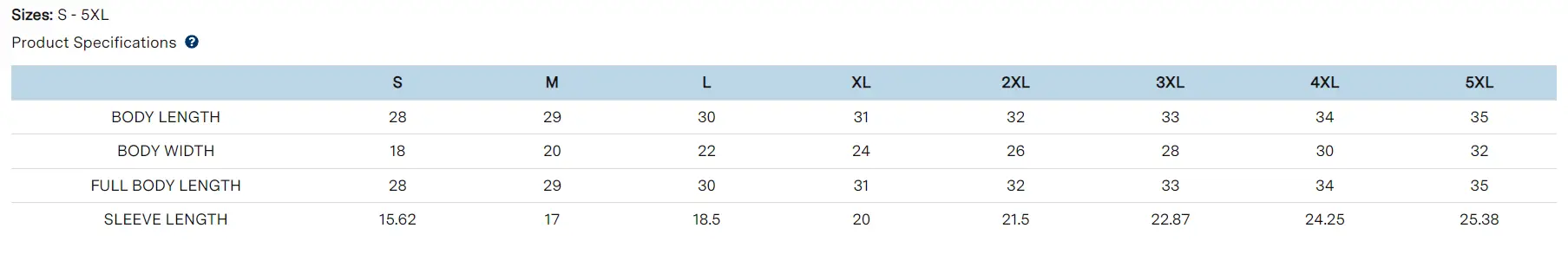 S, M, L, XL, 2XL, 3XL