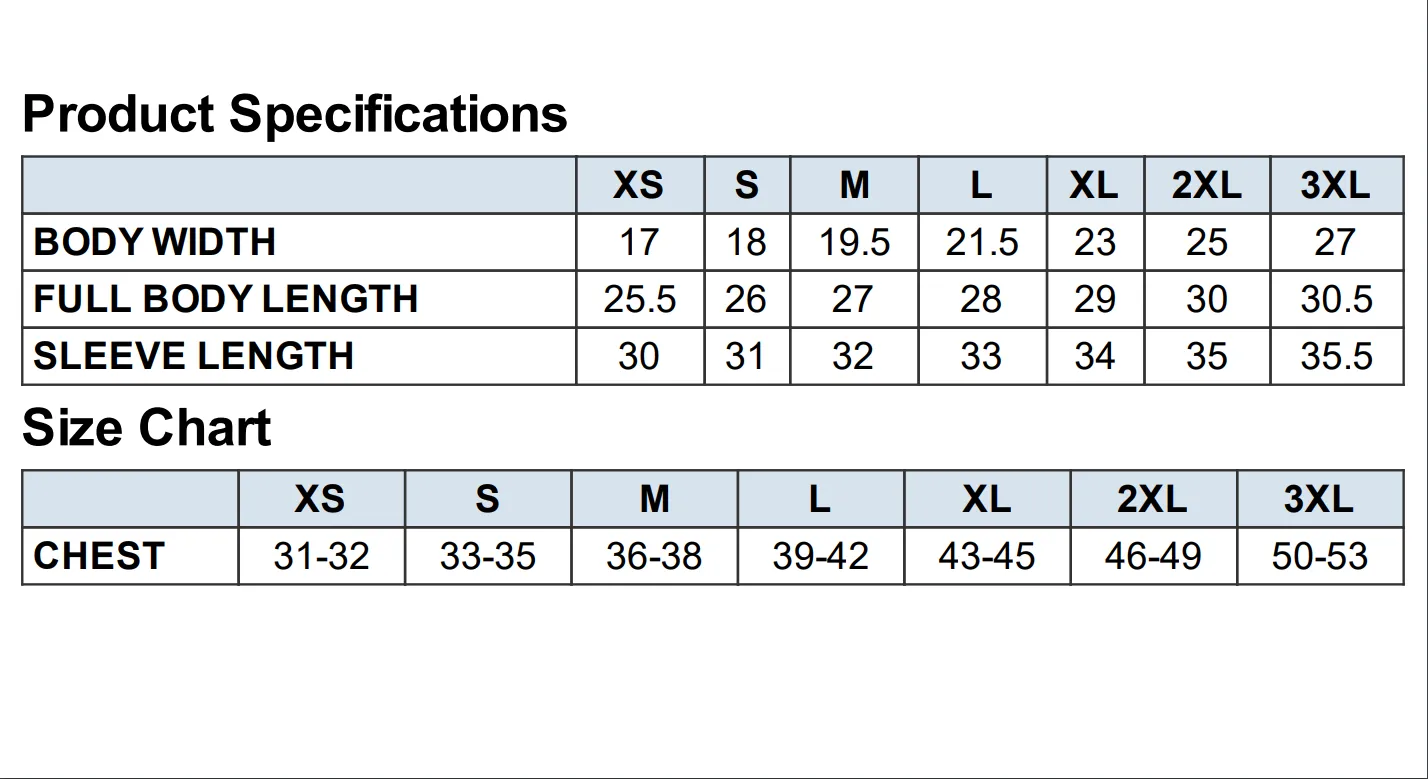 Sizes | XS, S, M, L, XL, XXL, 3XL |